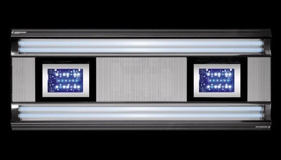 De Giesemann Aurora Hybrid combineert T5 verlichting met LED verlichting, wat zorgt voor een optimale verspreiding van licht in je aquarium. Er zijn geen schaduwen in je bak, terwijl de koralen niet zullen verbranden. Zowel de T5 als de LED verlichting is dimbaar en in te stellen op 5 kanalen. Hierdoor kun je het licht helemaal naar wens instellen. De Aurora is ook makkelijk te bedienen met een Bluetooth verbinding. Het brede spectrum aan licht is niet alleen prettig voor het oog maar ook goed voor de koralen. De ledclusters bevatten elk 75 watt aan LEDs en zijn verspreid over full spectrum white, blue, royal blue, red, en violet TRU-UV sub 400nm. Om de opbrengst van de T5 te optimaliseren zijn er reflectoren geplaatst die maar liefst 99% van het licht weerkaatsen.