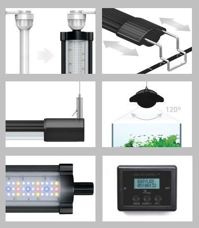 De nieuwe generatie Easy LED Universal 2.0 verlichtingssysteem is ontworpen om makkelijk aan te passen aan ieder aquarium. De LED verlichting is verkrijgbaar in verschillende maten en kunnen ook worden bevestigd aan de T5 of T8 houders. Ook kunnen ze op het aquarium worden geplaatst door middel van de verlengbare beugels. De Easy LED is laag in stroomverbruik, veiliger en heeft een lange levensduur.