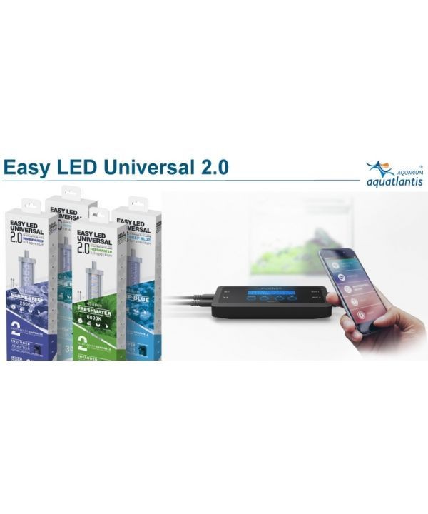 De nieuwe generatie Easy LED Universal 2.0 verlichtingssysteem is ontworpen om makkelijk aan te passen aan ieder aquarium. De LED verlichting is verkrijgbaar in verschillende maten en kunnen ook worden bevestigd aan de T5 of T8 houders. Ook kunnen ze op het aquarium worden geplaatst door middel van de verlengbare beugels.