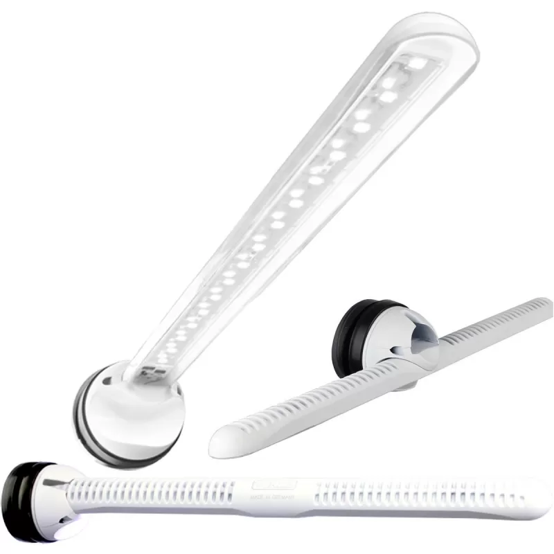 De eco chic LED-lampen met beschermingsklasse IP 68 werken permanent in de lucht maar ook onder water. Het speciale fabricageproces garandeert niet alleen de waterbestendigheid, het maakt ook de permanente onderwaterwerking mogelijk, waardoor ook de druk op de aquariumverwarmer wordt verlicht. Deze onderwaterverlichting voorkomt lichtreflecties op het wateroppervlak waardoor de lichtbron nog efficiënter wordt. Een dompeldiepte van 1 tot 2 cm (.4" - .8") is hier meer dan voldoende. Door gebruik te maken van de nieuwste componenten is een compacte behuizing ontwikkeld. Deze kan flexibel worden bevestigd met behulp van de magneethouder. Werking met extra lage veiligheidsspanning zorgt voor risicovrij gebruik onder water zonder elektrische verliezen.