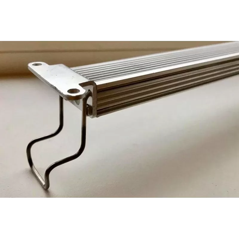 Diese handliche, ein- und ausfahrbare "Halterung" aus Stahldraht kann sowohl für randlose Aquarien als auch für geschlossene Aquarien mit ausreichend Haubenraum verwendet werden.