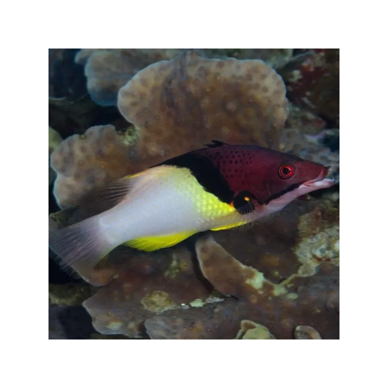 Der Schwarzband-Eberlippfisch ist ca. 20 cm lang und einmal im Aquarium eingesetzt eine echte Bereicherung. Diese Fische berühren die Koralle nicht, aber kleinere Garnelen und Krabben können gegessen werden.