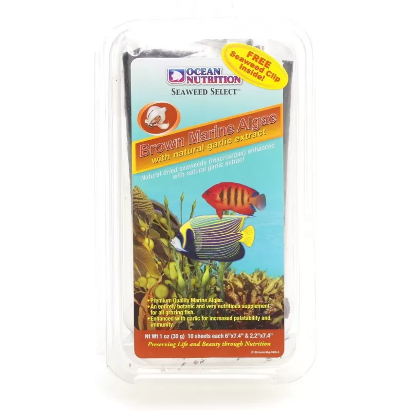 Ein vollkommen natürliches, hochnährstoffreiches Ergänzungsfutter für alle Weidefische, reich an Vitamin C und leicht verdaulich. Eine optimale Nahrungsquelle für pflanzenfressende Meeres- und Süßwasserfische mit weicheren Mundwerkzeugen. Angereichert mit natürlichem Knoblauchextrakt für erhöhte Akzeptanz bei wählerischen Essern und verbesserte Immunfunktionen. Reißen Sie ein etwa 5 cm x 7 cm großes Stück Seetang für das durchschnittliche 200-Liter-Gesellschaftsbecken ab und platzieren Sie es mit dem Seaweed Clip von Ocean Nutrition im Aquarium. Lassen Sie die Fische in Ruhe grasen. Alle großen Algenstücke, die sich lösen und an die Oberfläche schwimmen, sollten wieder befestigt werden. Entfernen Sie alle nicht gefressenen Algen nach 24 Stunden.
