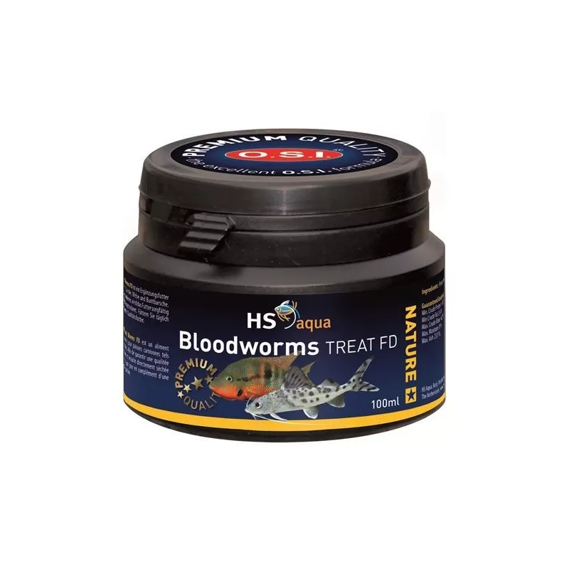 HS aqua Nature Treat Blood Worms FD ist ein Protein-Ergänzungsfutter für fleischfressende Fische wie Lachs, Wels und Cichliden. Um eine optimale Qualität zu gewährleisten, wird das Futter sorgfältig gereinigt und anschließend sofort gefriergetrocknet.