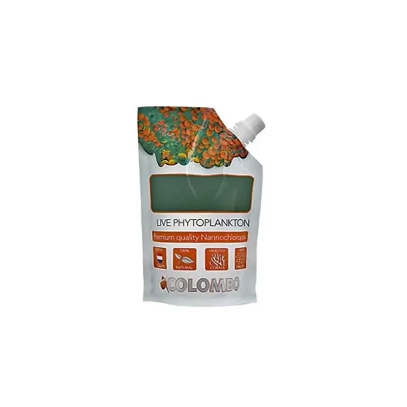 Colombo Live Phytoplankton ist lebendes Planktonfutter und bildet die Grundlage der Nahrungskette des Ökosystems in Ihrem Riffaquarium. Es dient direkt als Nahrungsquelle für Korallen, aber auch als Nahrungsquelle für Zooplankton, das wiederum von den Korallen und Fischen gefressen wird. Phytoplankton nimmt auch Phosphate und Nitrate als Nährstoffe auf, was diese Werte reduziert. Mit Hilfe Ihrer Dosierpumpe kann Phytoplankton ganz einfach dem Wasser Ihres Aquariums zugesetzt werden. Das lebende Phytoplankton wird frisch verpackt und muss im Kühlschrank bei einer Temperatur von 4 Grad aufbewahrt werden. Wenn die Algen absterben, verfärben sie sich von grün nach braun und können nicht mehr verwendet werden.