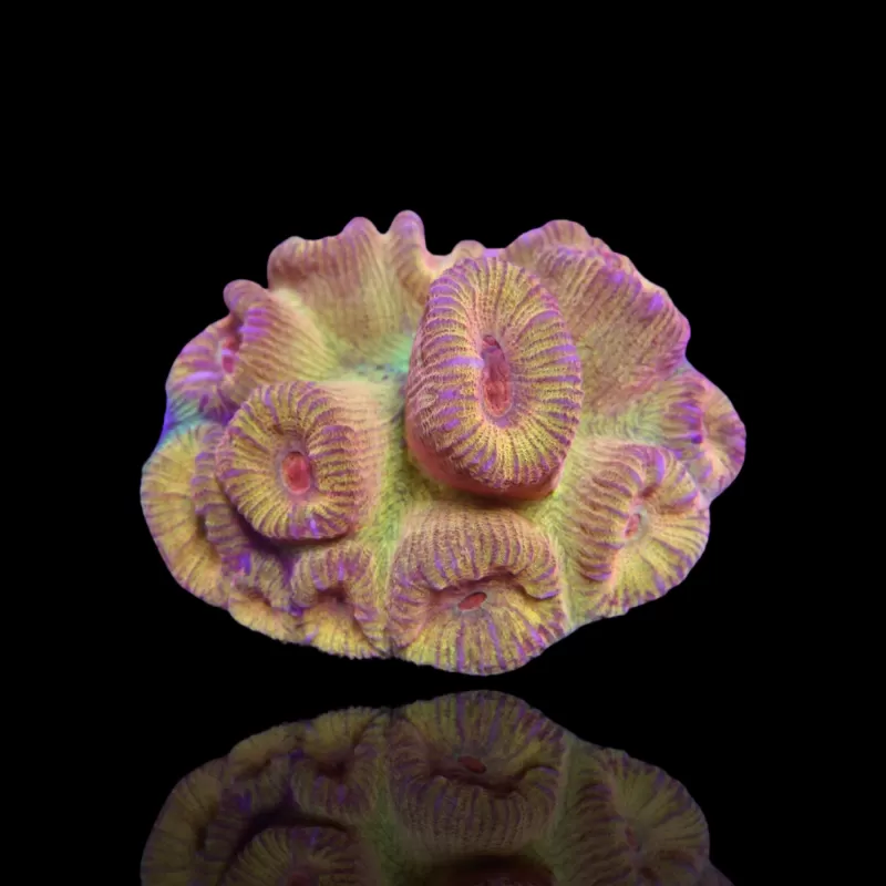 Barabattoia ist eine der eigentümlichen Arten mit hoch entwickelten Korallenpolypen, die so weit hervorstehen, dass sie fast wie Röhren aussehen, nicht unähnlich zu Tubastrea. Es gibt nur zwei Arten von gerippten Mondkorallen, Barabattoia amicorum und B. laddi, aber es ist B. amicorum, das wir gelegentlich in der Meerwasseraquaristik sehen. Die häufigste Farbform der gerippten Mondkoralle ist im Allgemeinen grün, manchmal mit einem orangefarbenen Mund, aber auch andere Farbformen werden immer häufiger.