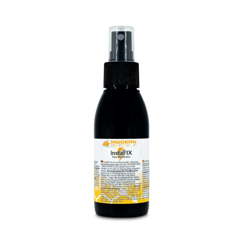 Modern Reef InstaFIX Glue Accelerator 100 ml ist ein Muss für jeden Aquarianer, der seinen Arbeitsprozess im Aquarium beschleunigen möchte. Durch die Beschleunigung der Aushärtungszeit von Sekundenkleber können Sie schneller und effizienter arbeiten, insbesondere bei der Fragmentmontage und Platzierung größerer Objekte. Dieses Produkt ist sicher für Ihr Riff und bietet eine schnelle und zuverlässige Lösung, um Ihre Aquarienprojekte in Rekordzeit abzuschließen.