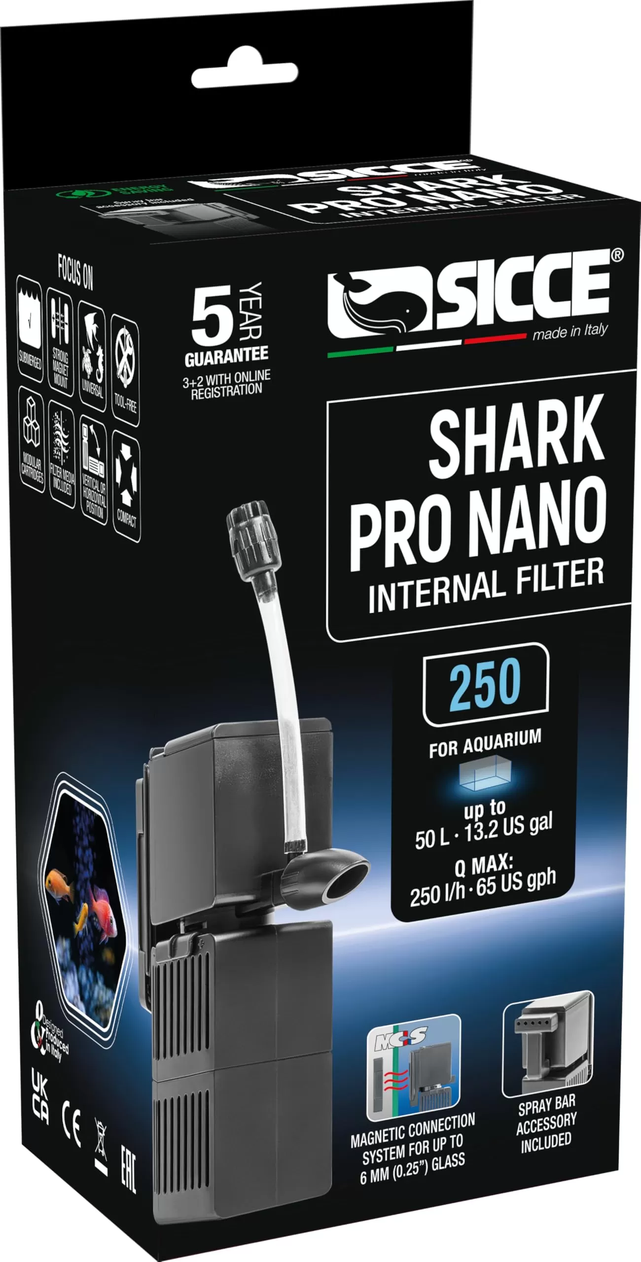 Der Sicce Shark Pro Nano 250 ist die ideale Lösung für Nanoaquarien. Dank seiner kompakten Bauweise, dem leisen Betrieb und der effektiven Filterung bietet dieser Filter ein optimales Lebensumfeld für Fische und Pflanzen.
