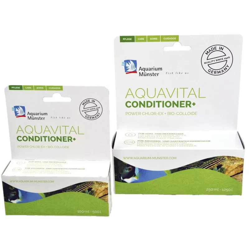 Aquavital Conditioner+ ist ein konzentrierter Wasseraufbereiter für optimale Lebensbedingungen in Süß- und Meerwasseraquarien Das Wasser kommt heute oft zu aggressiv aus dem Wasserhahn und ist für Zierfische nicht geeignet. Als fisch- und pflanzenfreundliches Gewässer kann man leider nicht bezeichnen, da das Wasser zahlreiche für Zierfische schädliche Stoffe enthält.