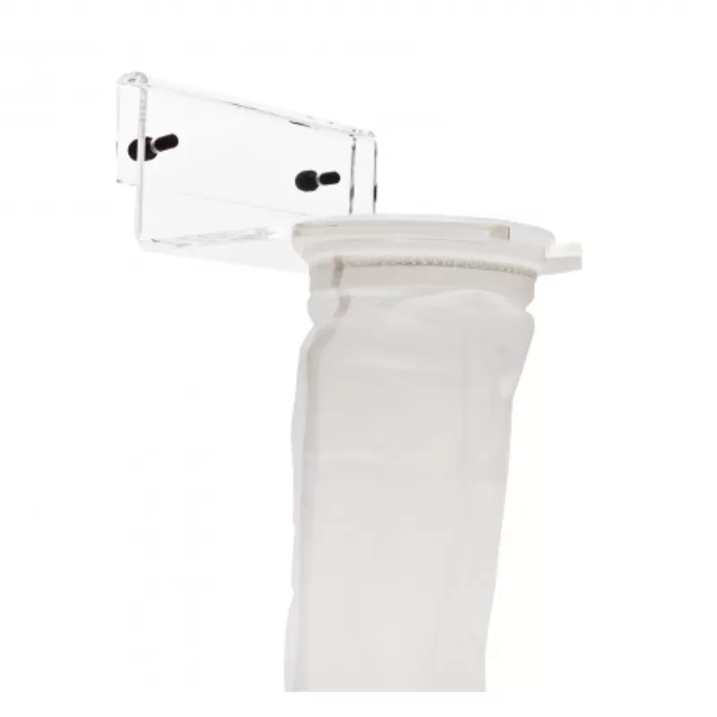 Befestigen Sie den Beutel mit dem mitgelieferten Acrylhalter am Sumpfglas (max. 14 mm dick) an einer Stelle, an der das Sumpfwasser mindestens 25 cm hoch ist. Das Wasser aus dem Aquarium sollte so geleitet werden, dass es zuerst durch den Filterbeutel fließt. Wenn der Beutel verstopft ist, achten Sie darauf, dass das Wasser über den Beutelrand direkt in den Filterbehälter fließen kann. Bitte beachten Sie: Bei einer Verstopfung des Beutels darf das Wasser nicht über den Rand des Filterbehälters selbst fließen.