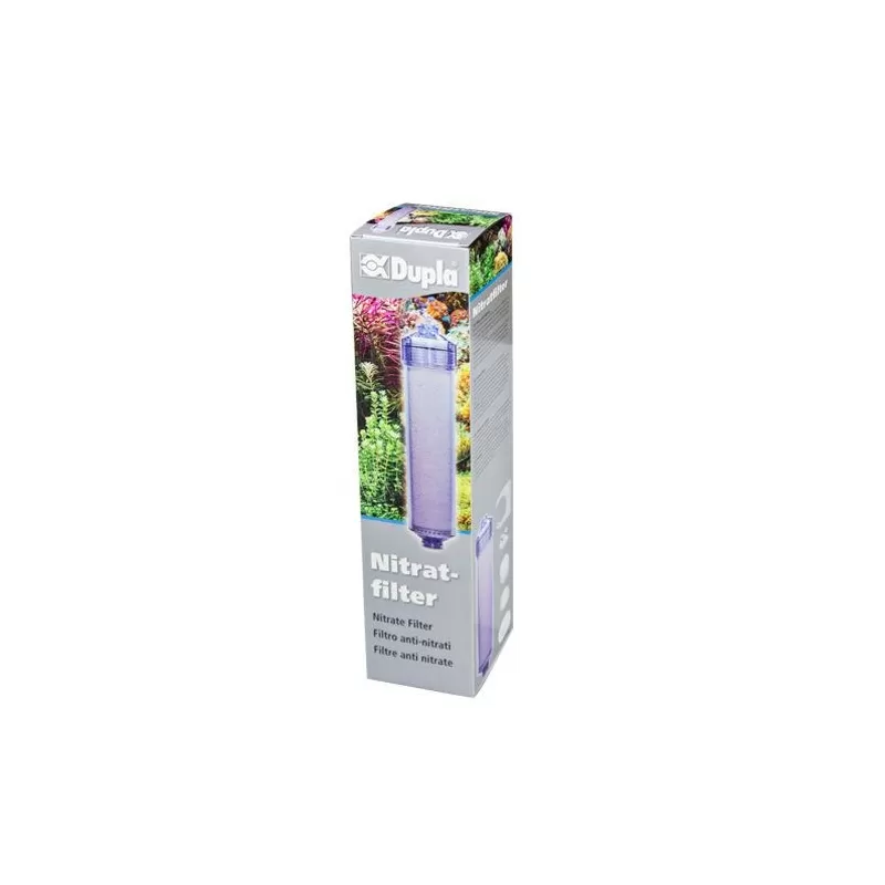 Filtergehäuse gefüllt mit 500 ml Duresin N. Wird hinter einer Osmoseanlage oder im Filterkreislauf des Süßwasseraquariums platziert. Inklusive Schlauchanschlüsse für Osmoseanlagen und den Aquarienfilter. 500 ml Filtervolumen binden max. 30.000 mg Nitrat.