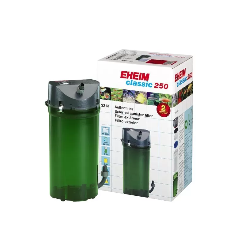 Die Eheim Classic Filter sorgen für eine mechanische und biologische Reinigung, kontinuierliche Umwälzung des Aquarienwassers und gleichzeitig für eine Anreicherung mit Sauerstoff. Das abgestimmte Verhältnis von Filterleistung, Druck und Filtervolumen garantiert eine hohe Effizienz und volle Ausnutzung der Filtermasse eines Eheim Classic Filters. Aquarien bis 250 Liter