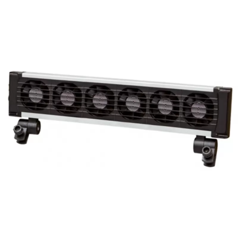 Der Aqua Cooler V6 kühlt Aquarien ab 300 l um max. 4° C. Durch die erzeugte Verdunstungskälte sinkt die Temperatur im Aquarium. Er ist einfach zu montieren und für Glaswände oder Aquarienabdeckplatten bis zu einer Breite von 25 mm geeignet. Die Ventilatoren mit Sicherheitsabdeckung sind bis zu 55° verstellbar.