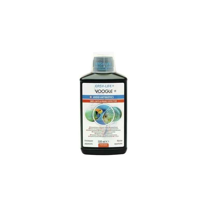 Voogle hilft schnell bei allen Süß- und Salzwasserfischen. Wirkt allgemein wohltuend, erhöht die Widerstandskraft und unterstützt den natürlichen Heilungsprozess. Sicher für alle anderen Süßwasser- und Meerestiere und den Biofilter
