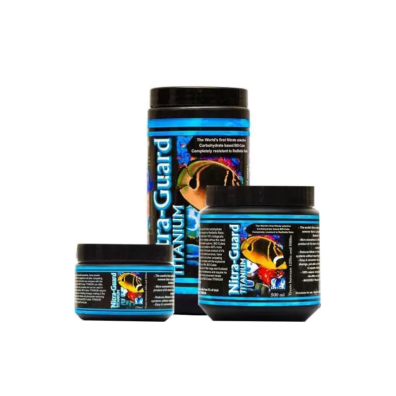 BIO-Cubes Titanium bestehen zu 100 % aus biologisch abbaubaren Polymeren, die Nitrate und Phosphate effektiv entfernen und in Meer- und Süßwassersystemen verwendet werden können. BIO-Cubes haben eine sehr große Oberfläche und enthalten 400 % mehr Kohlenhydrate als jede andere Marke, was sie zum weltweit besten Produkt seiner Art macht.