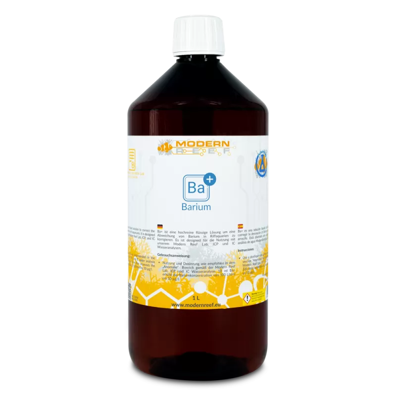 Barium ist ein weniger bekanntes, aber wichtiges Element in Riffaquarien. Es spielt eine wesentliche Rolle bei der Skelettbildung von Korallen und trägt zur Erhaltung gesunder, robuster Korallenskelette bei. Modern Reef Ba+ bietet eine einfache und sichere Möglichkeit, den Bariumspiegel auf dem richtigen Niveau zu halten, was zum gesunden Wachstum Ihrer Korallen und einer stabilen Wasserqualität in Ihrem Aquarium beiträgt.