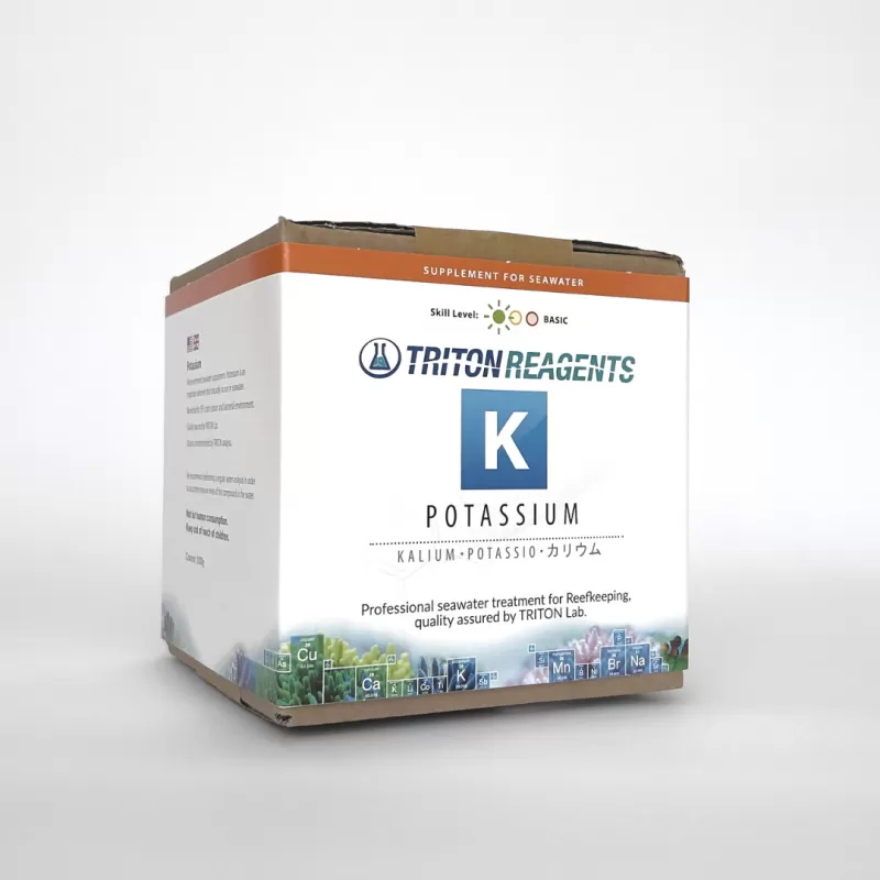 Nahrungsergänzungsmittel mit dem Makroelement Kalium im Meerwasser. Kalium ist ein wichtiges Element, das natürlicherweise im Meerwasser vorkommt. Vorteilhaft für die SPS-Korallenfarbe und das Bakterienmilieu.
