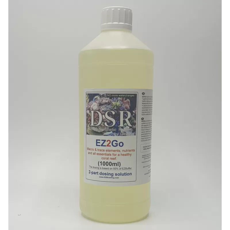 EZ2Go ist Teil eines ausgewogenen zweiteiligen Dosiersystems für den täglichen Gebrauch. Zusammen mit DSR EZBuffer werden alle wesentlichen Elemente bereitgestellt, um ein gesundes Riffaquarium zu schaffen.