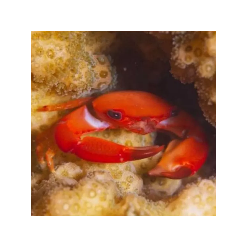 Die Red Coral Crab ist friedlich und kann paarweise in einer SPS-Koralle gehalten werden.