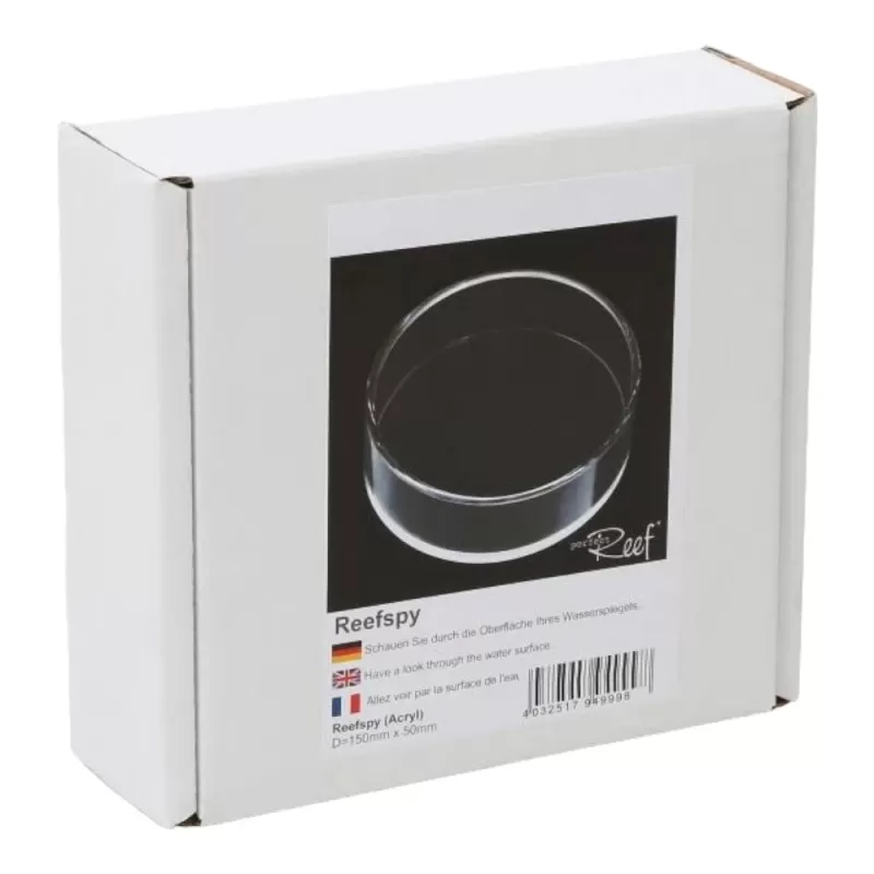 De Reefspy is in wezen een drijvend kijkglas gemaakt van hoogwaardig plexiglas. Het is speciaal ontworpen om op het wateroppervlak van je aquarium te drijven, waardoor je een directe en heldere kijk krijgt op je koralen, vooral dieper in het aquarium.