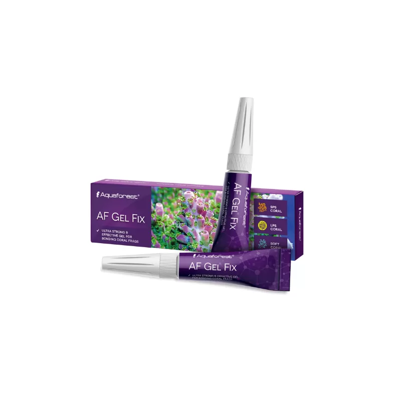 AF Gel Fix is een snelle en langdurige gel die koraalstekken lijmt. AF Gel Fix is ontworpen voor het nauwkeurig lijmen van kleine elementen. Vanwege de dichtheid van AF Gel Fix maakt het het gemakkelijk en moeiteloos om koraalfragmenten aan rotsen of pluggen te plakken. De gel bevat geen gifstoffen die gevaarlijk zijn voor het zeeleven. Obligaties in 10 seconden.