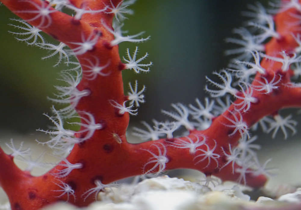 De Diodogorgia nodulifera (Red finger gorgonian) is echt prachtig. Rood lichaam met witte poliepen. Deze gorgoon heeft vrij dikke takken met fijne witte poliepen. Een Gorgoon is in principe vrij makkelijk houdbaar.
