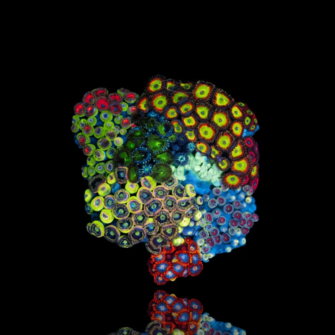 - Kleurrijke mix: Deze Zoanthus-soort bevat een variatie aan kleuren, zoals rood, groen, oranje en blauw.
