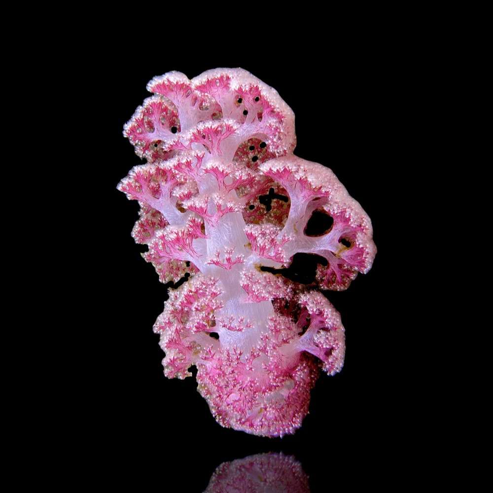 Dendronephthya Pink, ook bekend als de Roze Zeeventilator, is een prachtig en opvallend zacht koraal dat een vleugje zachtheid en kleur toevoegt aan het zeeaquarium. Met zijn delicate roze tint en sierlijke vertakte structuur is Dendronephthya Pink een betoverende aanblik. Dit koraal gedijt het beste onder gedimd licht en matige tot sterke waterstroming. Het vereist specifieke zorg en aandacht om te gedijen in het aquarium, zoals het handhaven van een stabiele waterkwaliteit en het regelmatig controleren van de waterparameters. Dendronephthya Pink creëert een levendige en romantische sfeer in het aquarium en biedt een prachtig visueel contrast. Het zorgt voor een gevoel van beweging en tederheid in het onderwaterlandschap. Het is belangrijk om te weten dat Dendronephthya Pink enige ervaring en toewijding vereist om de ideale omstandigheden te creëren, dus raadpleeg een deskundige in zeewateraquaria voor advies en begeleiding bij het verzorgen van dit fascinerende koraal.