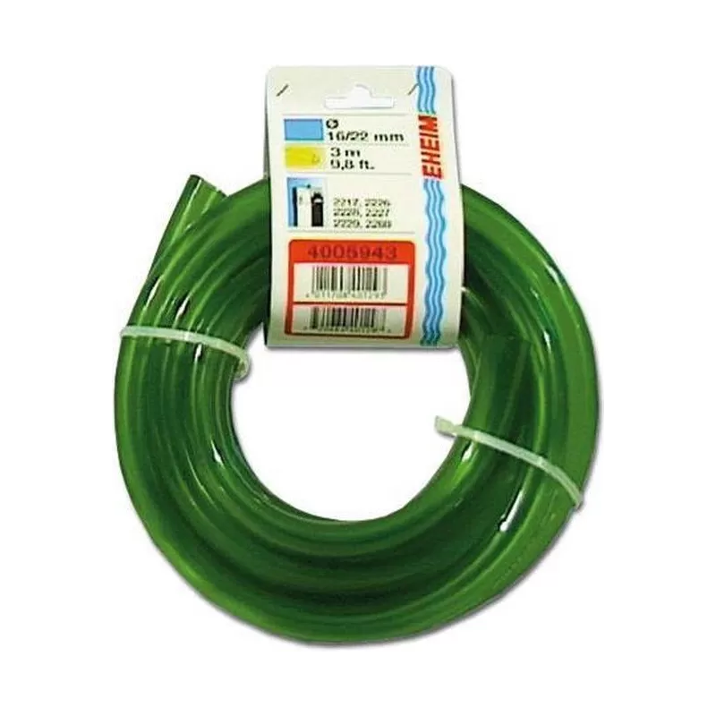 De bekende soepele groene slang van Eheim met een binnenmaat van 16 mm en een buitenmaat van 22 mm.