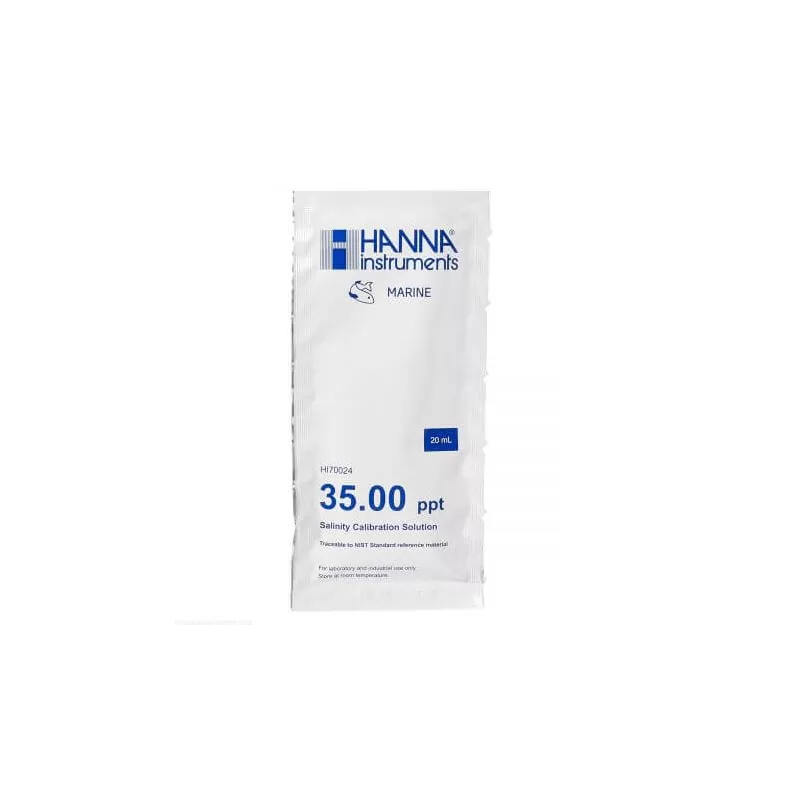 HI-70024p is een kalibratieoplossing van topkwaliteit voor het zoutgehalte van zeewater. Deze vloeistof is geschikt voor het ijken van de Hanna saliniteitsmeter.