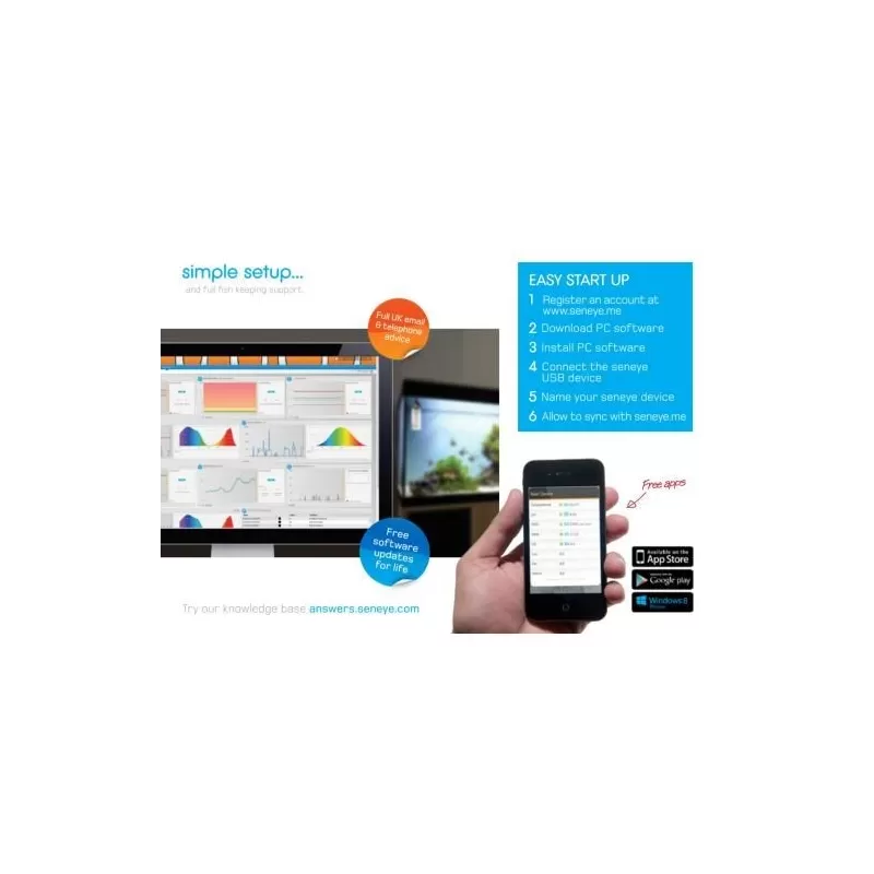 Het is dus niet meer nodig om het water manueel te testen. Installeer uw seneye-toestel en verbindt het gewoon draadloos met je wifi netwerk. De seneye registreert 1500 metingen per maand. De grafieken en historie van de metingen zijn online terug te vinden op pc, tablet en mobiel via de seneye website. Hier kunt u ook terecht voor hulp en advies. De seneye maakt namelijk gebruik van een goede technische klantenservice.