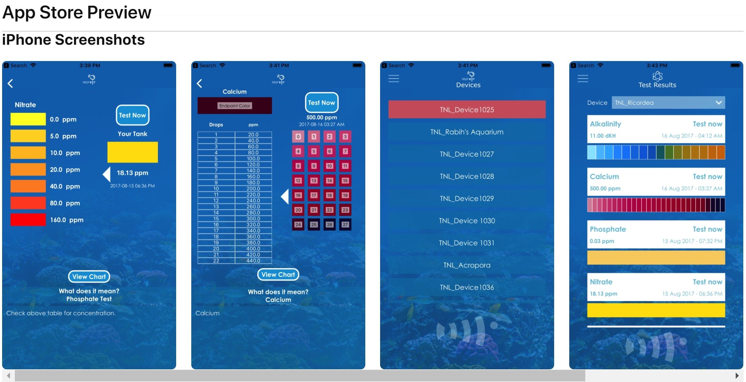 Calcium, Alkalinity, Phosphate, Nitrate Tests |