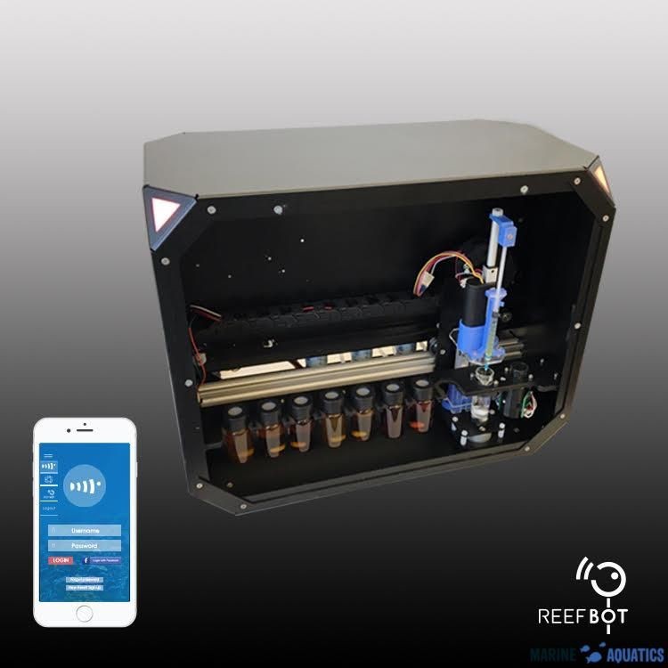 De ReefBot is een automatisch watertestapparaat dat uw aquarium, tank of vijver bewaakt door periodiek tests uit te voeren, deze te analyseren en u real-time updates te sturen via een app op de mobiel. U kunt niet alleen uw aquarium monitoren, u kunt zelfs uw eigen testschema's uitvoeren en instellen en de ReefBot de rest van het werk op afstand voor u laten doen!