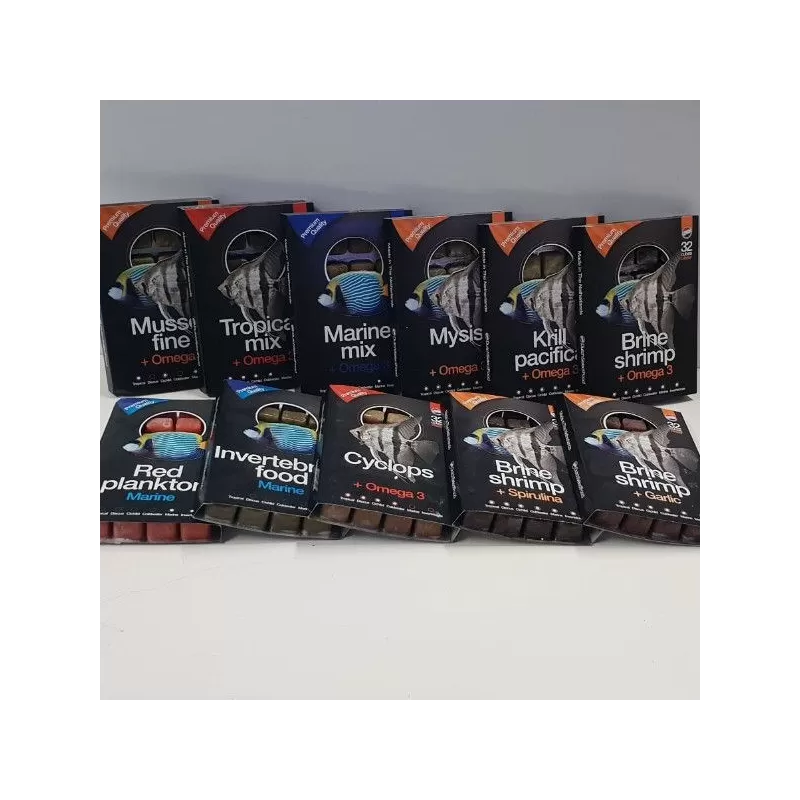 Diepvries voer voor zeeaquaria, zelf samen te stellen.