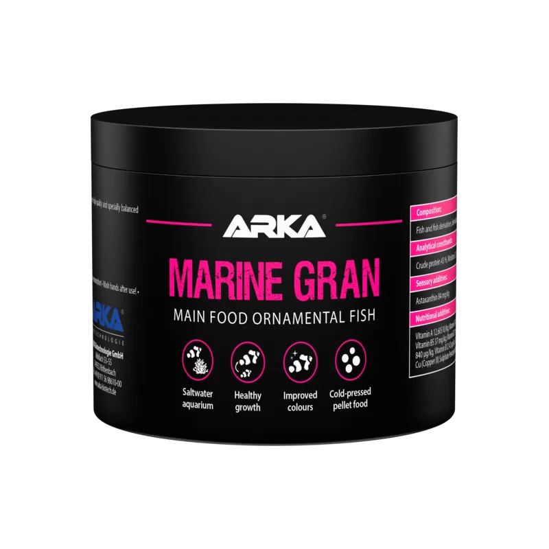 Arka Marine Gran Soft 120g is een premium zachtgranulaatvoer dat speciaal is ontwikkeld voor alle zeevissen. Dit voer is rijk aan essentiële voedingsstoffen, vitamines en mineralen, en helpt je vissen te groeien, gezond te blijven en hun natuurlijke kleuren te behouden. De zachte structuur van de granulaatkorrels maakt het makkelijk verteerbaar, wat resulteert in minder watervervuiling en een schoner aquarium.