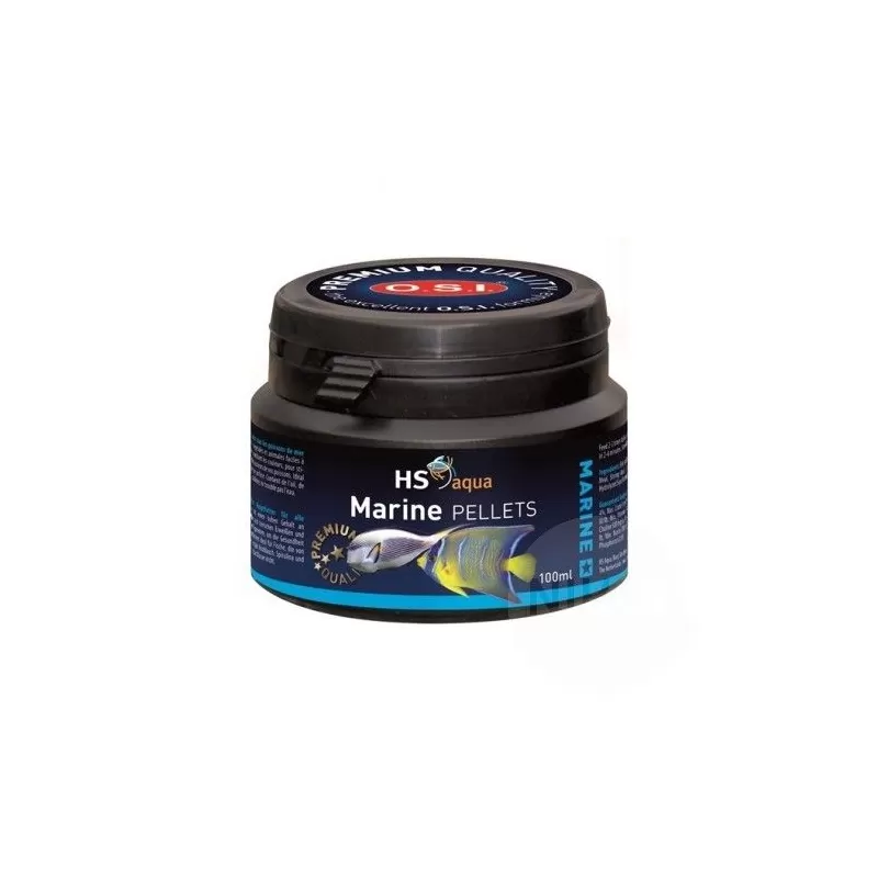 HS Aqua Marine Pellets 100 ml is uitgewogen, volledig voer voor alle zoutwater aquariumvissen. Dit voer heeft een hoog gehalte aan licht verteerbare, plantaardige en dierlijke eiwitten en kleurversterkende, natuurlijke pigmenten.