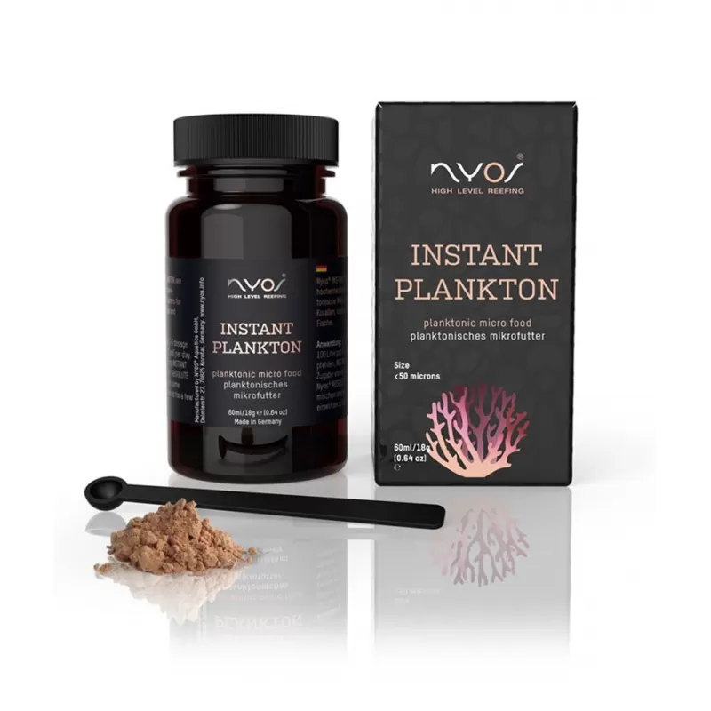Planktonic microfeed. NYOS® INSTANT PLANKTON is een sterk ontwikkelde plankton microfeed clusters voor koralen, ongewervelde dieren en mariene siervissen (deeltjesgrootte: 5-20 micron).