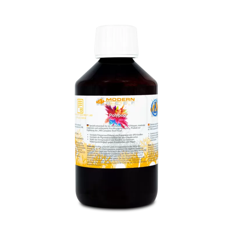 Versterk de gezondheid en groei van je koraal met Modern Reef Polypop 250ml, een premium voedingssupplement voor mariene aquaria. Dit product is speciaal ontwikkeld om de polypuitstulping van je koraal te stimuleren, waardoor je koraal sterker en levendiger wordt. Polypop biedt een geconcentreerde bron van essentiële nutriënten, aminozuren en vitaminen die de vitaliteit van je onderwaterleven verbeteren en bijdragen aan een gezond, bloeiend aquarium.