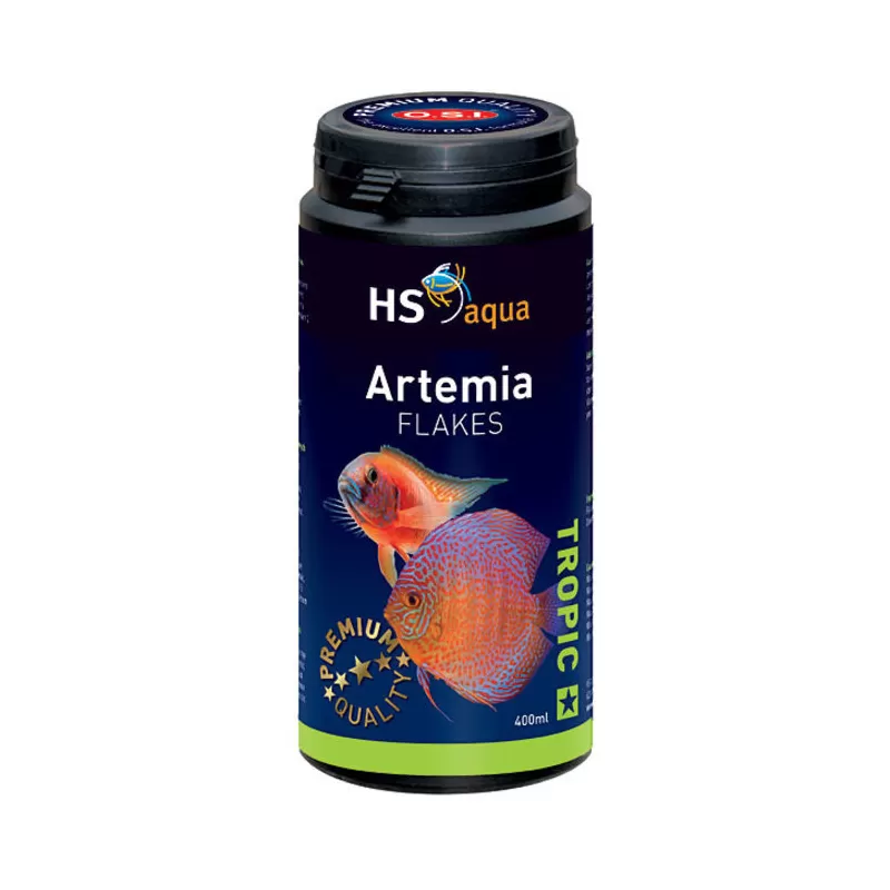 HS-aqua Artemia Flakes is aanvullende voeding voor alle vissen welke vooral dierlijke voeding nodig hebben. Vanwege de sterke geur is dit voer tevens ideaal voor de ''moeilijke'' eters. Dit voer is gebaseerd op Artemia-kreeftjes met een hoog gehalte aan natuurlijke carotenoïden, om de kleur, de groei en de gezondheid te bevorderen. Vanwege de evenwichtige samenstelling krijgen vissen alle benodigde voedingsstoffen binnen.
