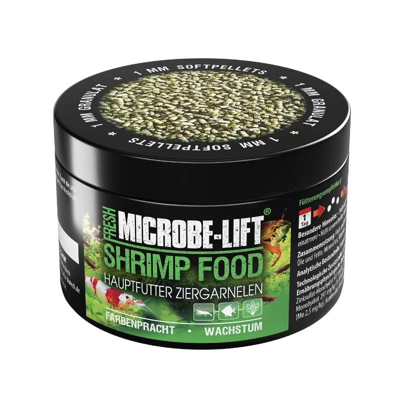 Microbe Lift Shrimp Food 150ml (50g) is een speciaal ontwikkeld voer voor garnalen dat voorziet in alle voedingsstoffen die nodig zijn voor een optimale groei, gezondheid en kleur. Dit premium garnalenvoer is gemaakt van natuurlijke ingrediënten en is perfect uitgebalanceerd om te voldoen aan de behoeften van garnalen in zoetwateraquaria.