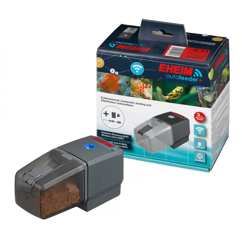 De Eheim Autofeeder+ is een intelligente automatische voederautomaat. Alle functies kunnen worden geprogrammeerd en gecontroleerd via elke moderne smartphone, tablet of computer (Windows&Mac).