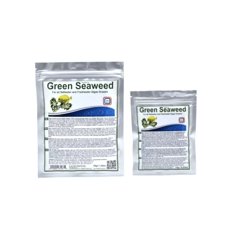 DVH Seaweed Green is een natuurlijke en hoogwaardige voeding voor herbivore vissen, zoals doktersvissen, keizersvissen en andere zeewaterplanteneters. Dit zeewier is rijk aan essentiële voedingsstoffen en biedt een gezond dieet dat perfect aansluit bij hun natuurlijke voedingsgewoonten.