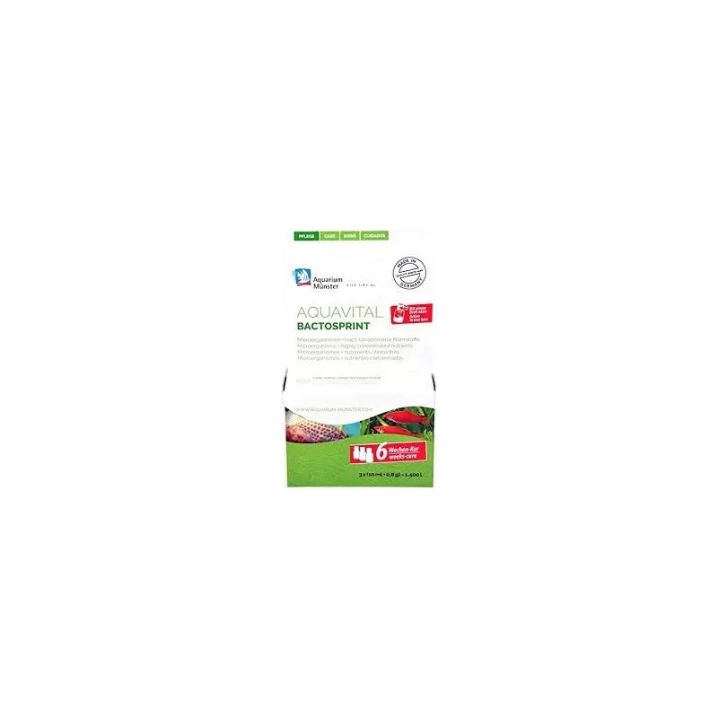 Aquarium Münster Aquavital Bactosprint is een innovatief product bestaande uit twee componenten die door een effectieve bacteriecultuur werken om een optimaal ecosysteem te bieden met kristalhelder, algenvrij water.
