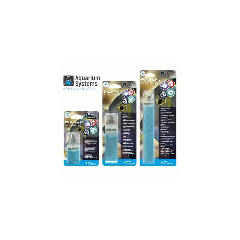 Om deze schadelijke organismen op lange termijn te elimineren, is het daarom essentieel om bacteriën aan het water toe te voegen. Dit is waar Waste-Away-gels binnenkomen: ze geven geleidelijk bacteriën af aan het water om de geëlimineerde te vervangen. Eenvoudig, effectief en zonder het gebruik van dure apparatuur zoals doseerpompen, gels zorgen voor een bron en constante afgifte van nuttige bacteriën. Dringt door in moeilijk bereikbare plaatsen.