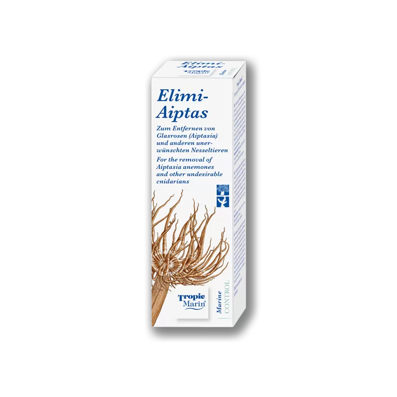 Aiptasia-anemonen zijn een van de meest voorkomende plagen in het houden van zeeaquaria. Meestal onopzettelijk toegevoegd aan het aquarium met levende steen of koraal, deze anemonen verspreiden zich snel en beschadigen het koraal met hun prikkende vermogen. Aiptasia-anemonen en andere ongewenste stekende organismen kunnen snel en veilig worden bestreden met Tropic Marin® ELIMI-AIPTAS.