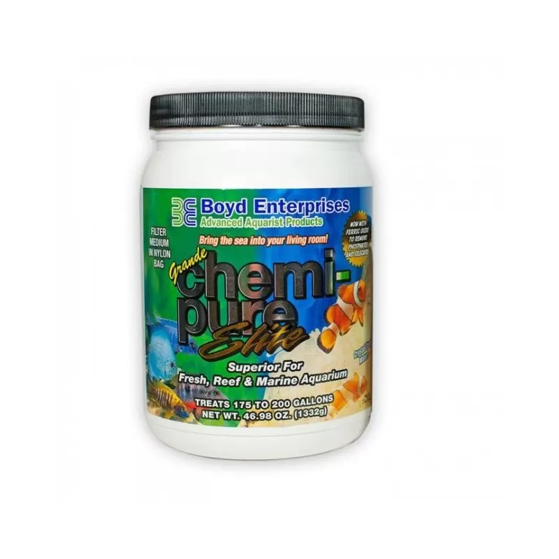 Chemi-pure Elite bevat GFO (granulair ijzeroxide) om fosfaten en silicaten uit het aquariumwaterlichaam te verwijderen. GFO is bewezen als een van de beste keuzes voor het verwijderen en beheersen van fosfaat- en / of silicaatniveaus in uw aquarium.