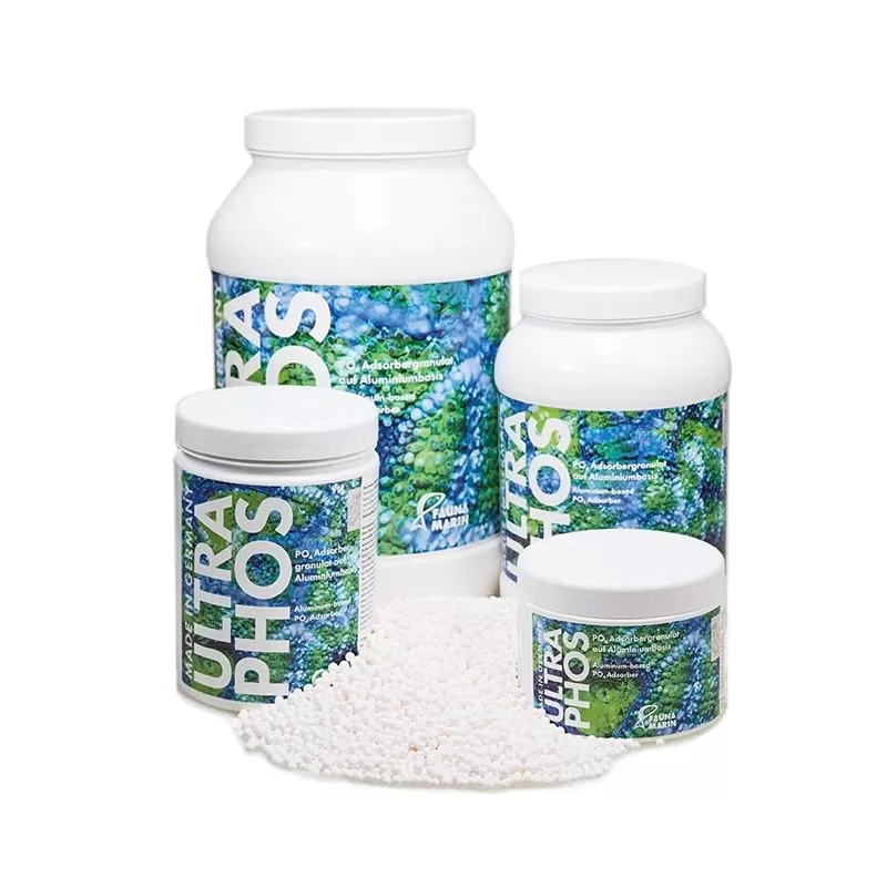 Deze verontreinigende stoffen zijn stevig gebonden aan het oppervlak van de Ultra-Phos en komen niet meer vrij. Met Ultra-Phos kan het voedingsgehalte van het aquarium erg laag worden gehouden. Ongewenste algengroei wordt effectief voorkomen en koralen kunnen hun natuurlijke kleuren ontwikkelen.