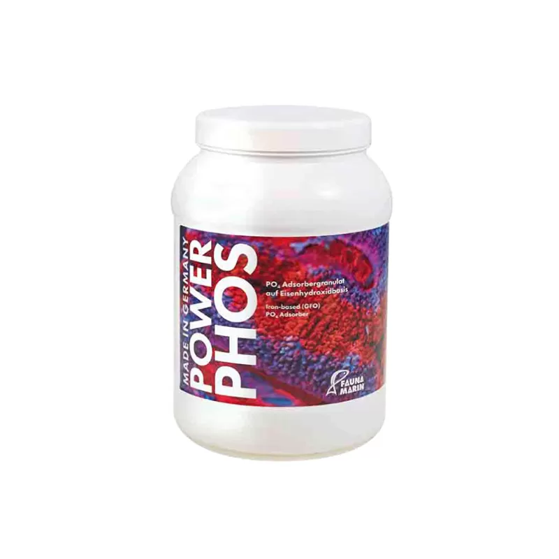 Fauna Marin Ultra Power Phos is een op ijzer-hydroxide basis adsorber die veilig fosfaten en silicaten uit het aquarium verwijdert. De verontreinigende stoffen worden aan het oppervlak van Fauna Marin Ultra Power Phos gebonden en zullen niet worden vrijgegeven.