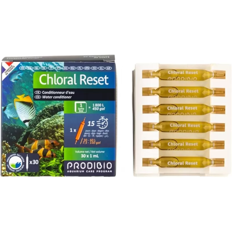 Bestel Prodibio Chloral Reset 6 Ampullen vandaag nog bij Coral and Fish Store en houd je aquarium veilig en gezond. Wij bieden snelle levering en uitstekende klantenservice om ervoor te zorgen dat je aquarium altijd in topconditie blijft. Bekijk onze website voor meer informatie over dit product en andere aquariumaccessoires.
