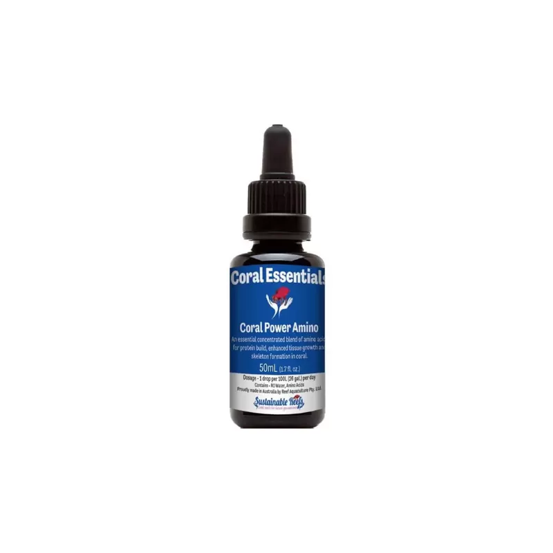 Coral Power Amino is een geconcentreerde mix van essentiële aminozuren voor zeeaquaria. Het is essentieel voor de productie van enzymen, weefselgroei en skeletvorming. Koralen hebben ook aminozuren nodig om eiwit te bouwen voor weefselgroei en ook voor de synthese van de organische matrix die calciumcarbonaatdepositie in het skelet reguleert en versnelt, ook wel bekend als calcificatie